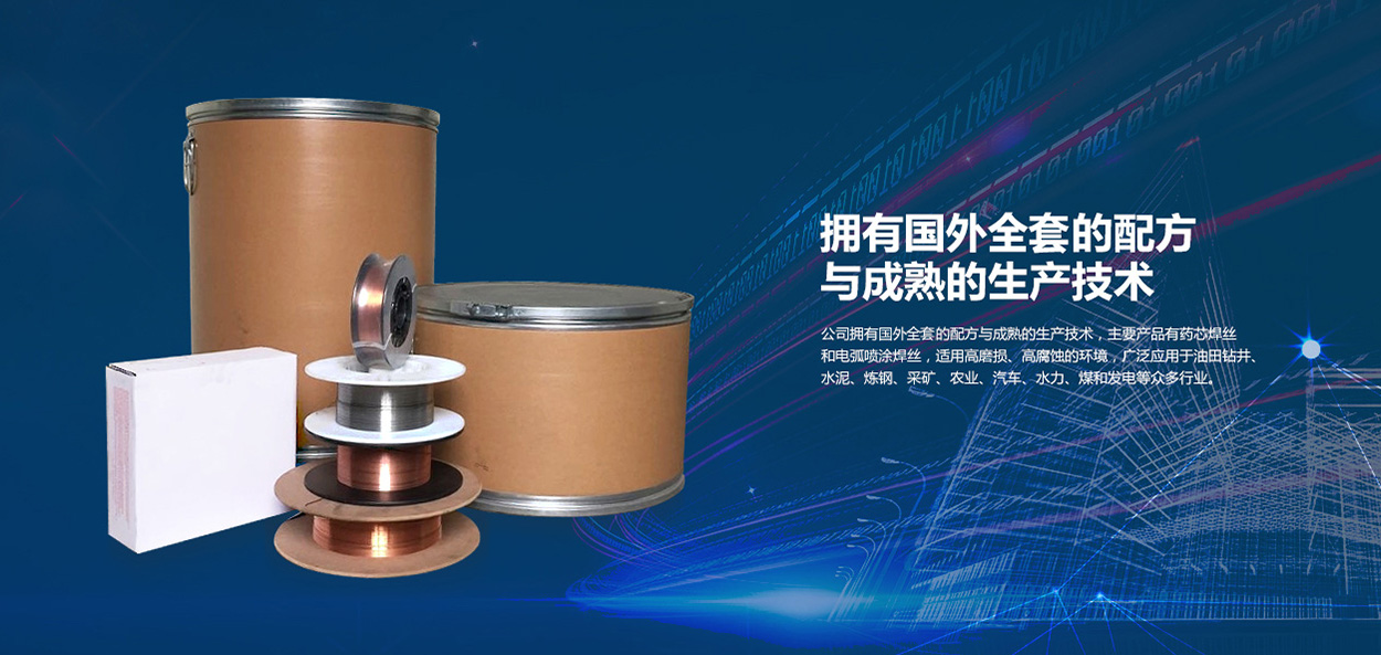 公司擁有國外先進的配方與成熟的生產技術,主要產品有藥芯焊絲和電弧噴涂焊絲,適用高磨損、高腐蝕的環境,